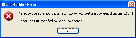 For the stackbuilder, are you behind any proxy? Can you open the url mentioned in the error message via your browser? You can set the appropriate proxy values on the first page of stackbuilder.