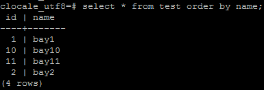 I tried all possible collation example -- select * from test order by name collate "en_US";