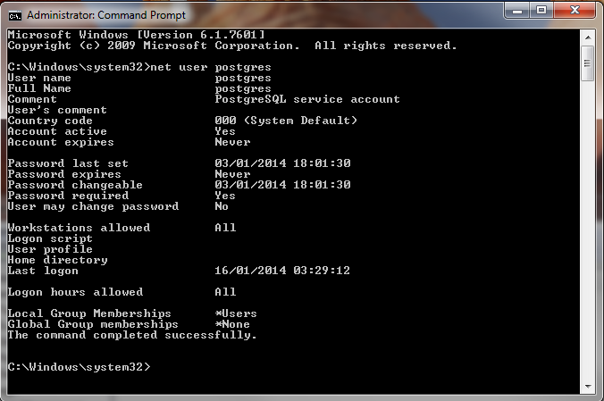 postgres system user very well. Try deleting that user and trying the