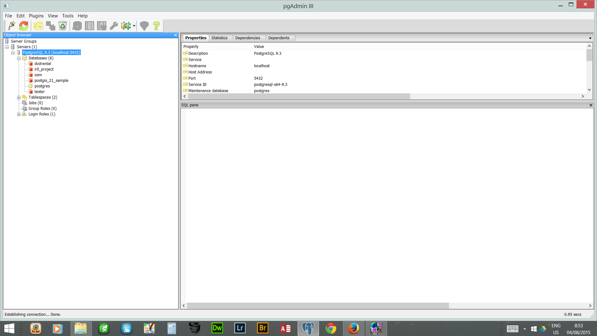 8.1 (64).I have one main database I am developing on a localhost:5432, with four