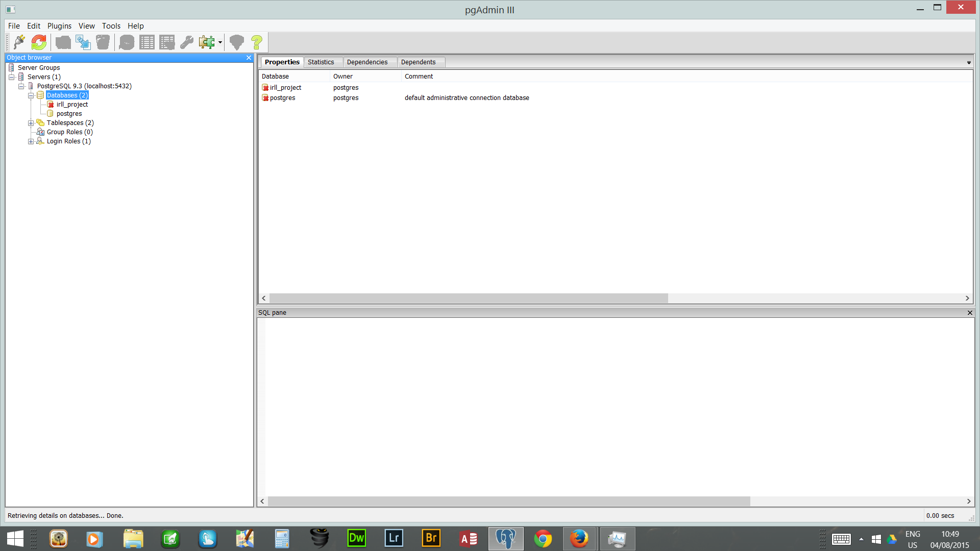 postgresql databases disappearing and reappearing and disappearing on localhost - Postgresql x649.3 on Windows 8.1 (64)