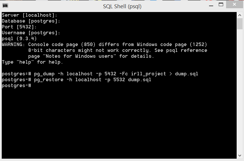 C:\Users\killian>pg_dump -Fc -p 5432 -U postgres irll_project | pg_restore