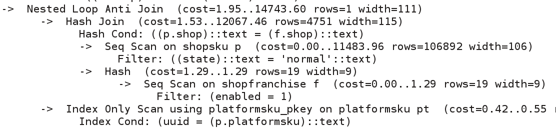 in query 1 I noticed the explain forecast the nest loop anti join return 1 row as below,it was the result of (f join p) join pt: