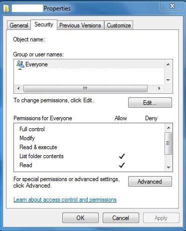 directoryI have granted READ access to EVERYONE on the CSV folder on the network