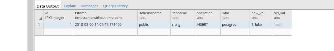 recent postgres I've seen just using json to capture the whole new and
