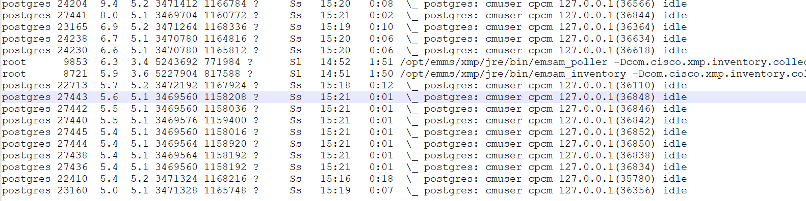 ps command output.If you connect to the database, does select * from pg_stat_activity() show