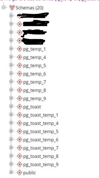 (pg_temp, pg_toast) are not disappearing even after restarting the database.