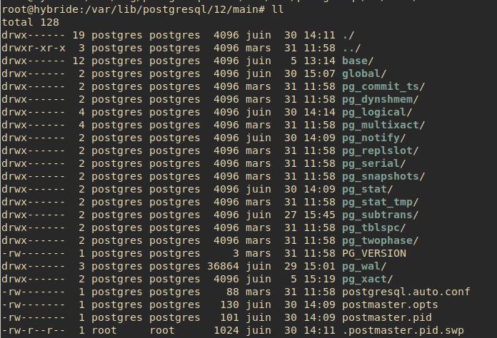 drwx------ 19 postgres postgres 4096 juil. 1 20:16 ../