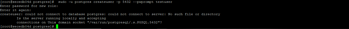 sudo -u postgres createuser -p 5432 --pwprompt testuserI am getting the attached error of port.