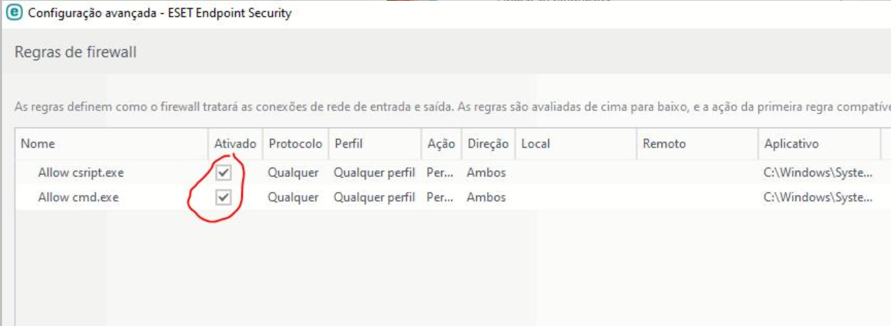 Then, I have allowed not only cspript.exe that was requiring but also the cmd.exe, as follows: