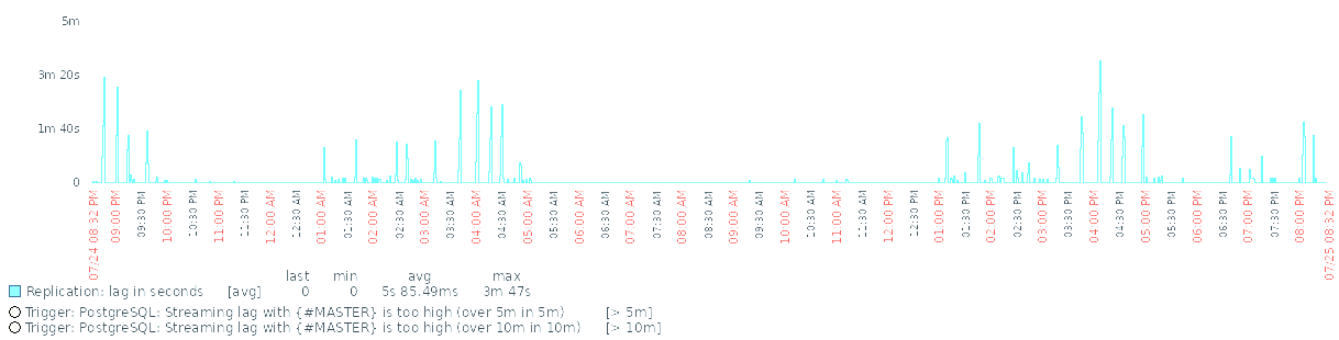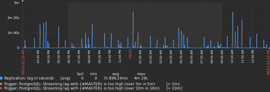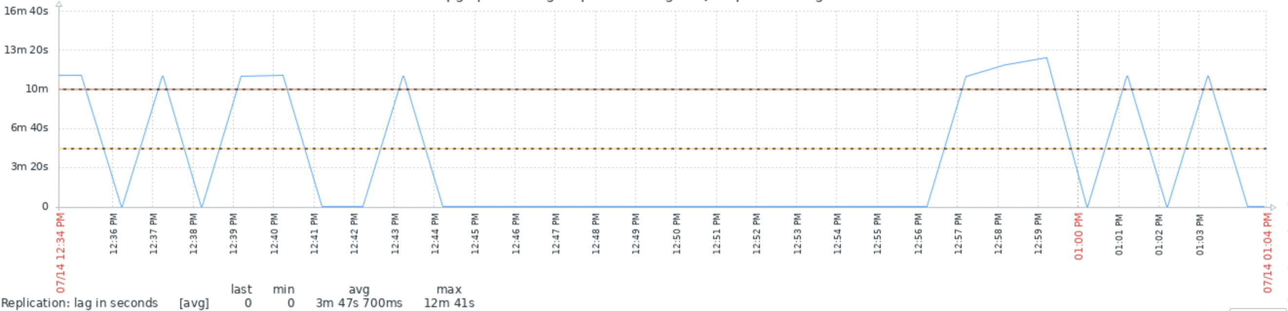 But the replication delay is still happening quite often, except this time goes up to 120s only.