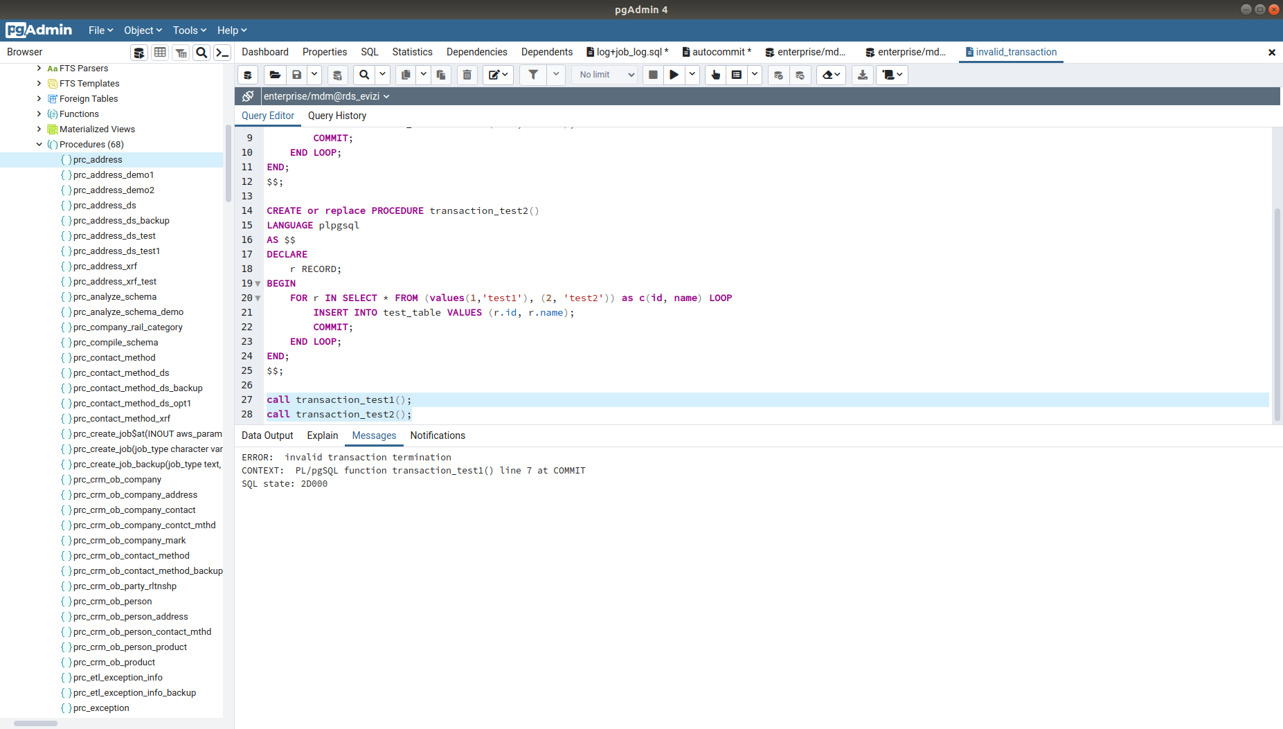 postgres=# call transaction_test1(); call transaction_test2();