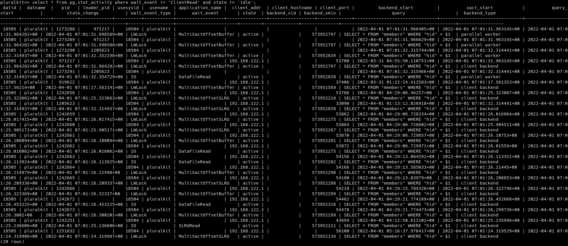 Is there an ERROR: multixact something in your postgres log?