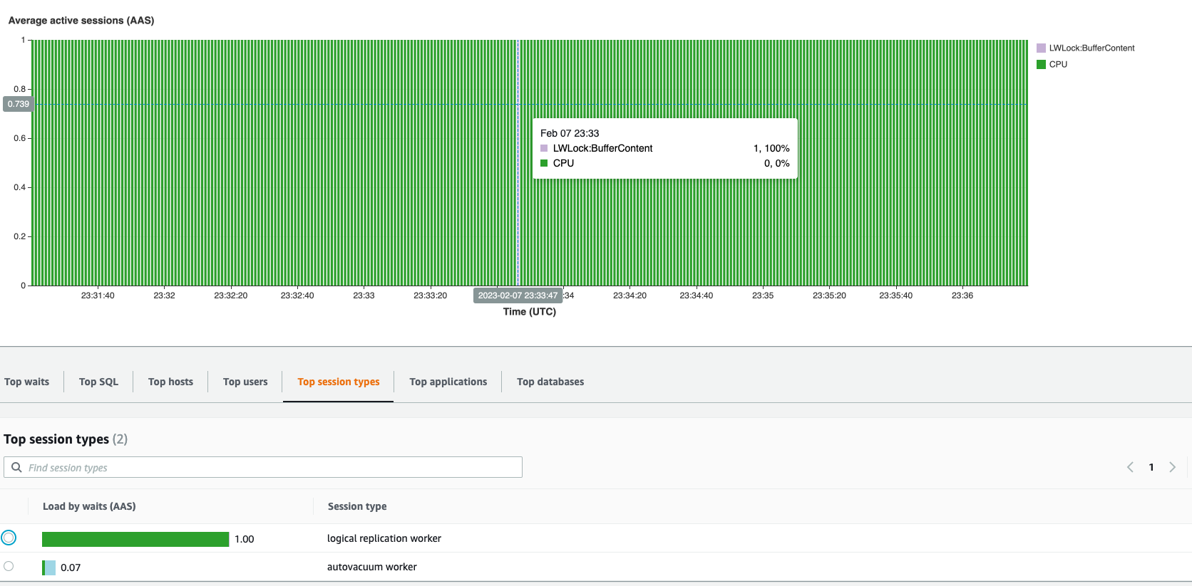 currently have 1 pub/sub that covers about 100 tables.Here is the output from P1 showing there is a Lag of at least 80GB