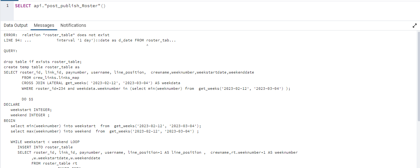 LINE 94: ... interval '1 day')::date as d_date FROM roster_tab...