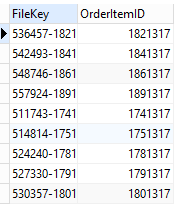 actually filtering on the Order Item ID field.select "FileKey", "OrderItemID" from "vw_rptInvc_Permits"