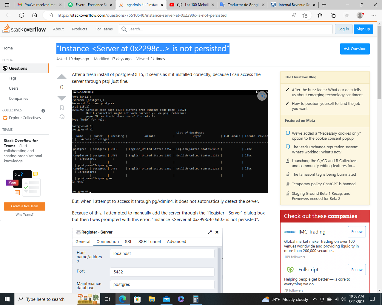 The first screenshot is about pgAdmin which is a Postgres client not