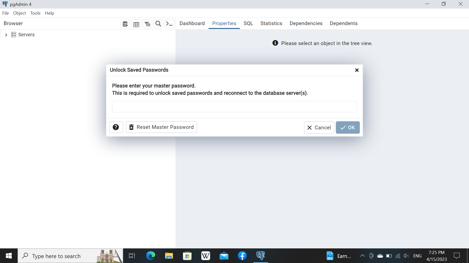 up for pgAdmin4 or the one for the Postgres server/database you are