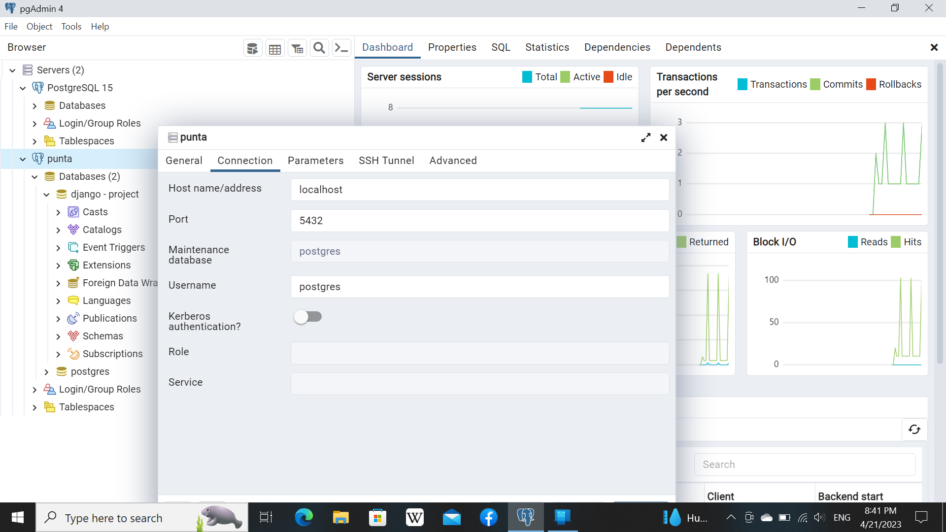 Also you probably also look at the Properties for the PostgreSQL 15