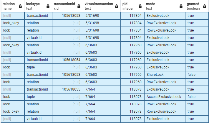 -- here i can see this transaction trying to aquire a AccessExclusiveLock in this tuple