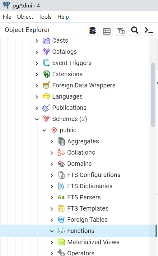 machine where we have only a public schema.1) I doubt that if this is the database you are showing in your pgAdmin4