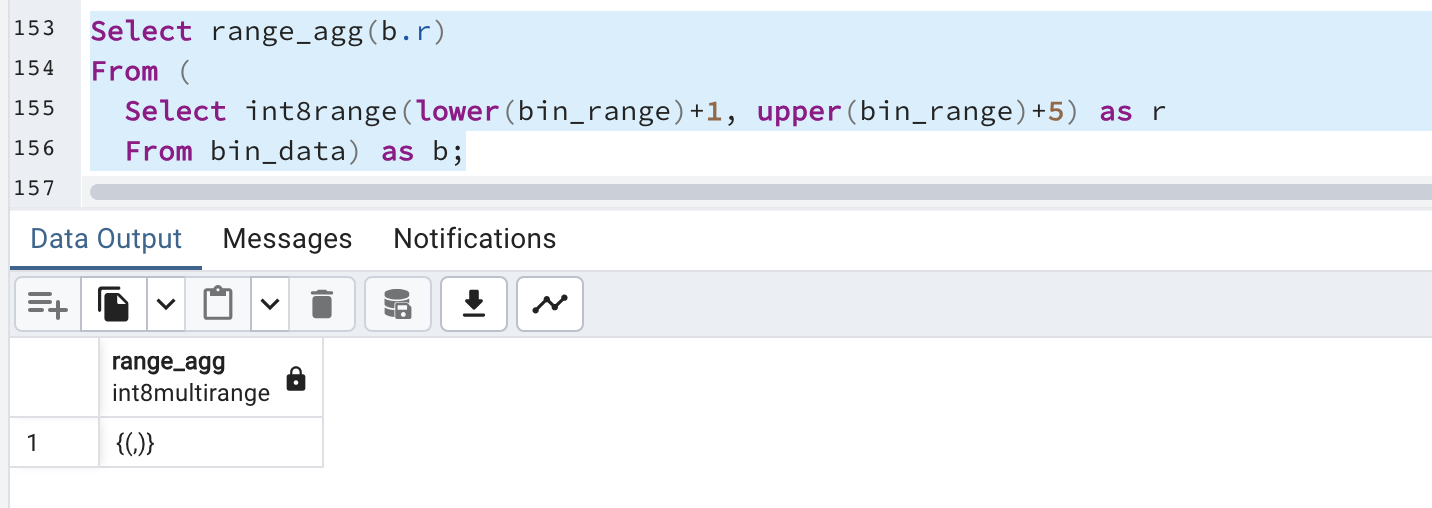 Select int8range(lower(bin_range)+1, upper(bin_range)+5) as r