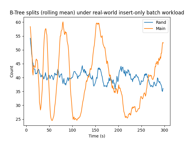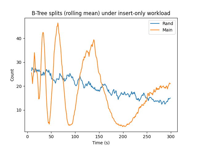 stumbled upon an interesting oscillating patters around various B-Tree metrics