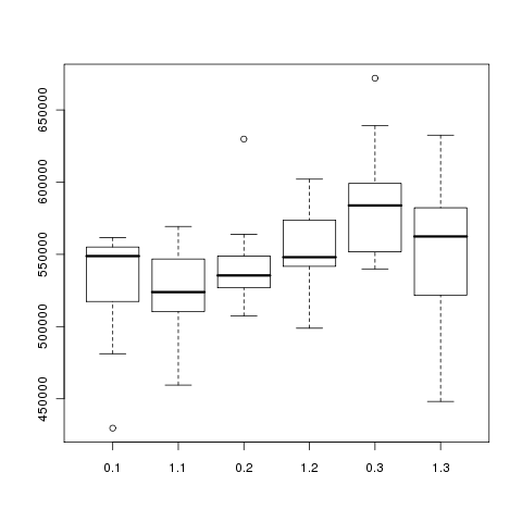 enable_usestatmcvs was on or not (represented by a 1 or 0), total times
