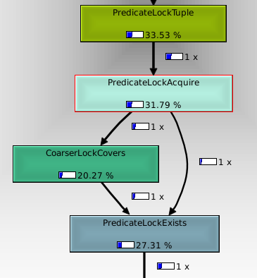 PredicateLockTuple(), which matches with the 50% increase in execution