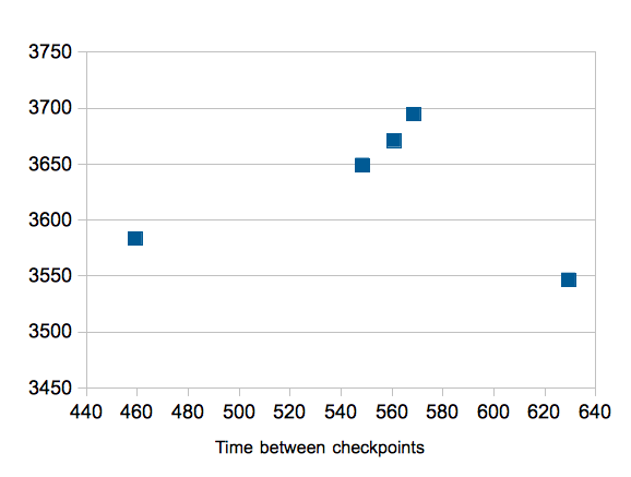 test is averaging about 550 seconds between checkpoints, NOTPM should