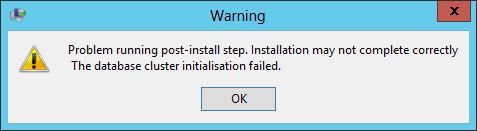 The database cluster initialization failed.