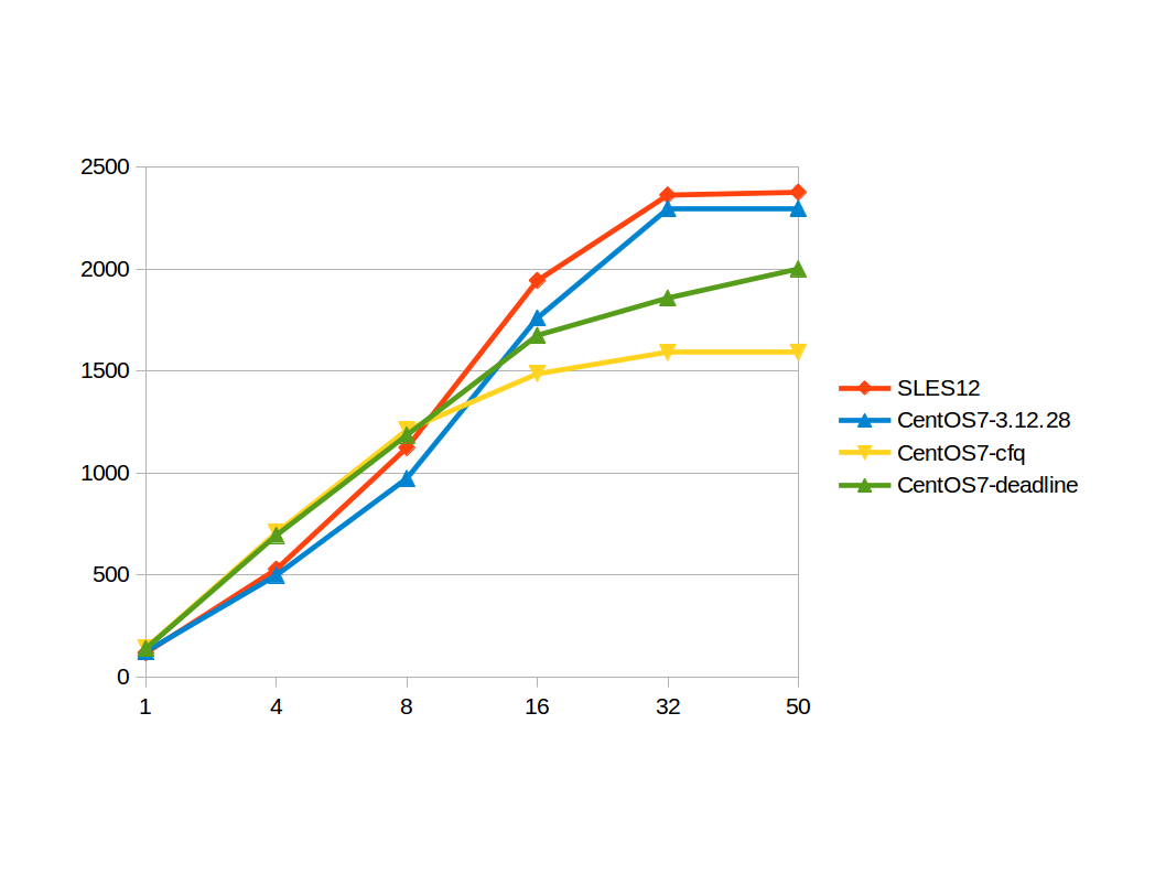3) CentOS7 (kernel 3.10 with cfq scheduler)