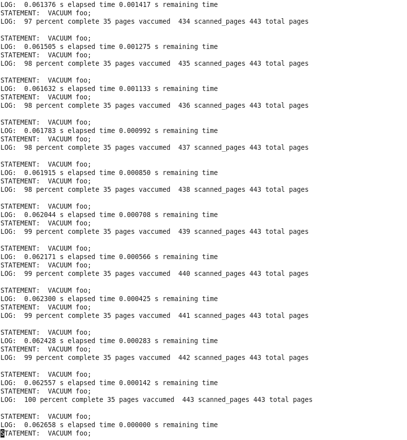 remaining time for VACUUM.
