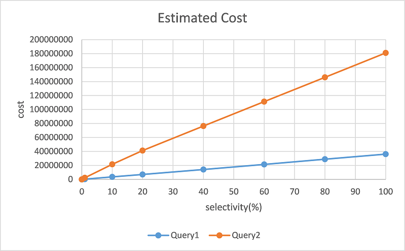 We can find that that the optimizer estimates the different cost value for two queries which have almost the same execution time.