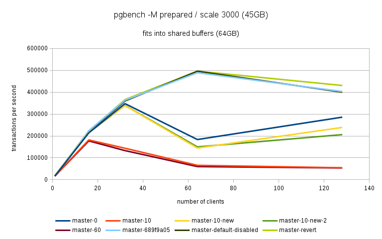 the performance drop came much sooner in these cases - at 16 clients).
