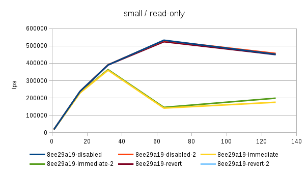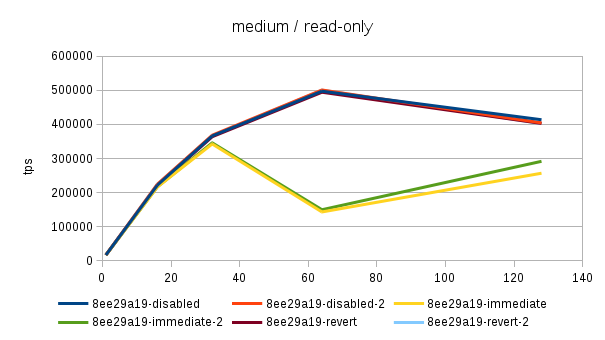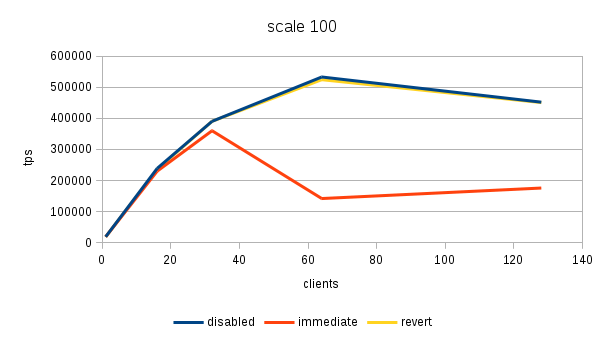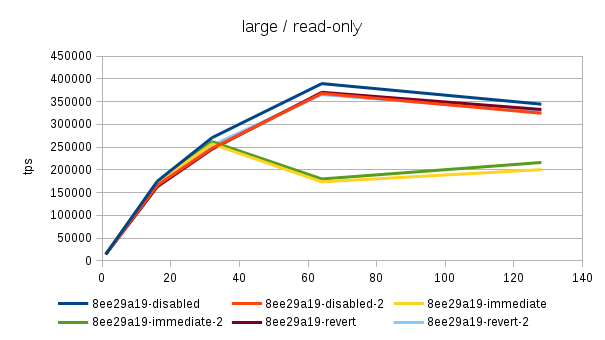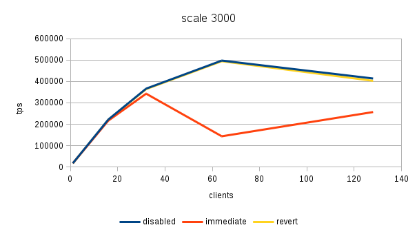 the "disabled" case is actually consistently faster than "reverted" -