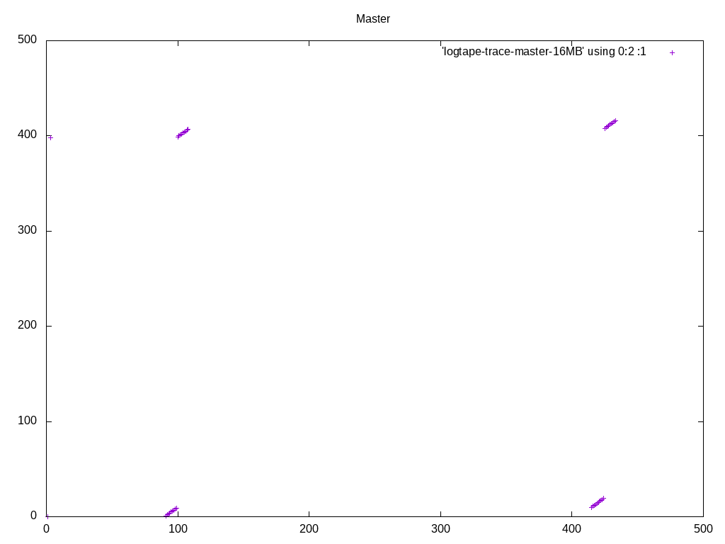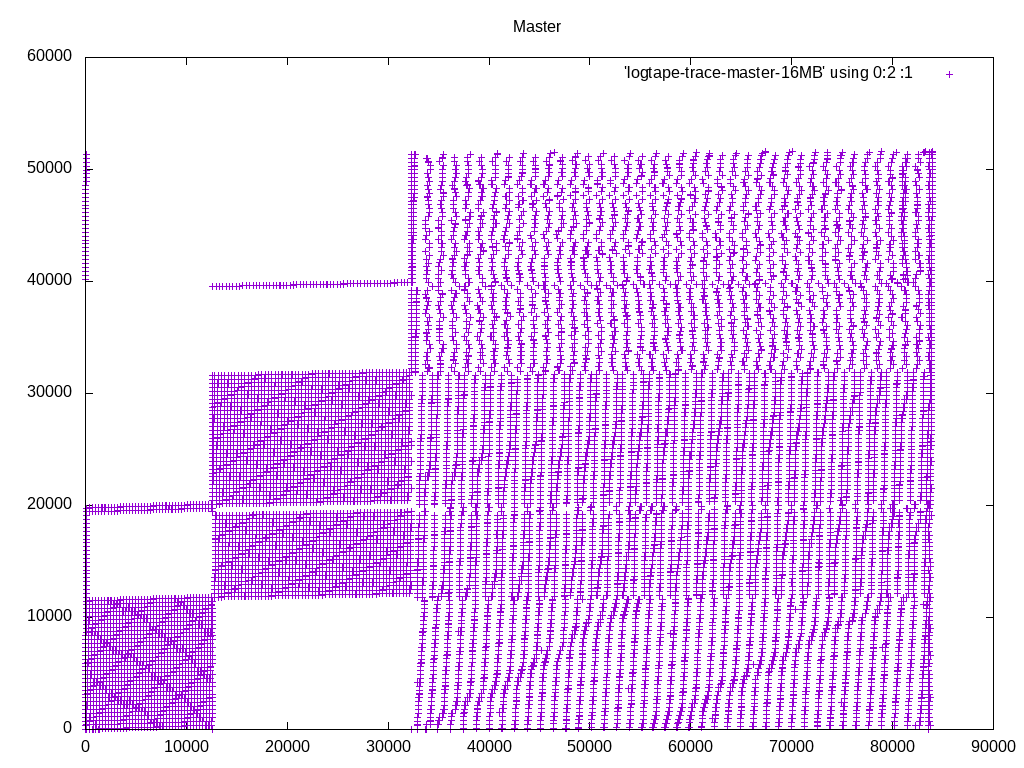 query with master and with these patches, and plotted the access pattern