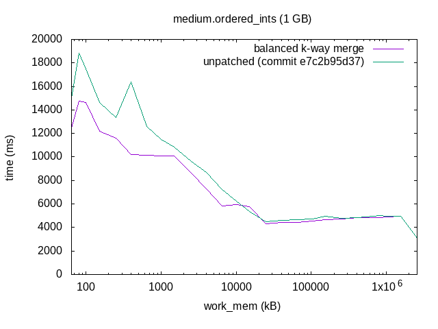 data with work_mem='1MB' or less, it's also slightly faster. I'm not too