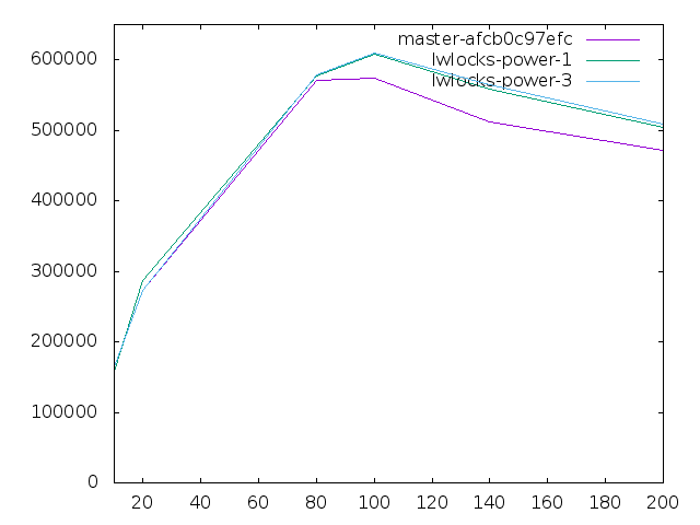 reproduce any win of Power8 LWLock optimization. But probably there is