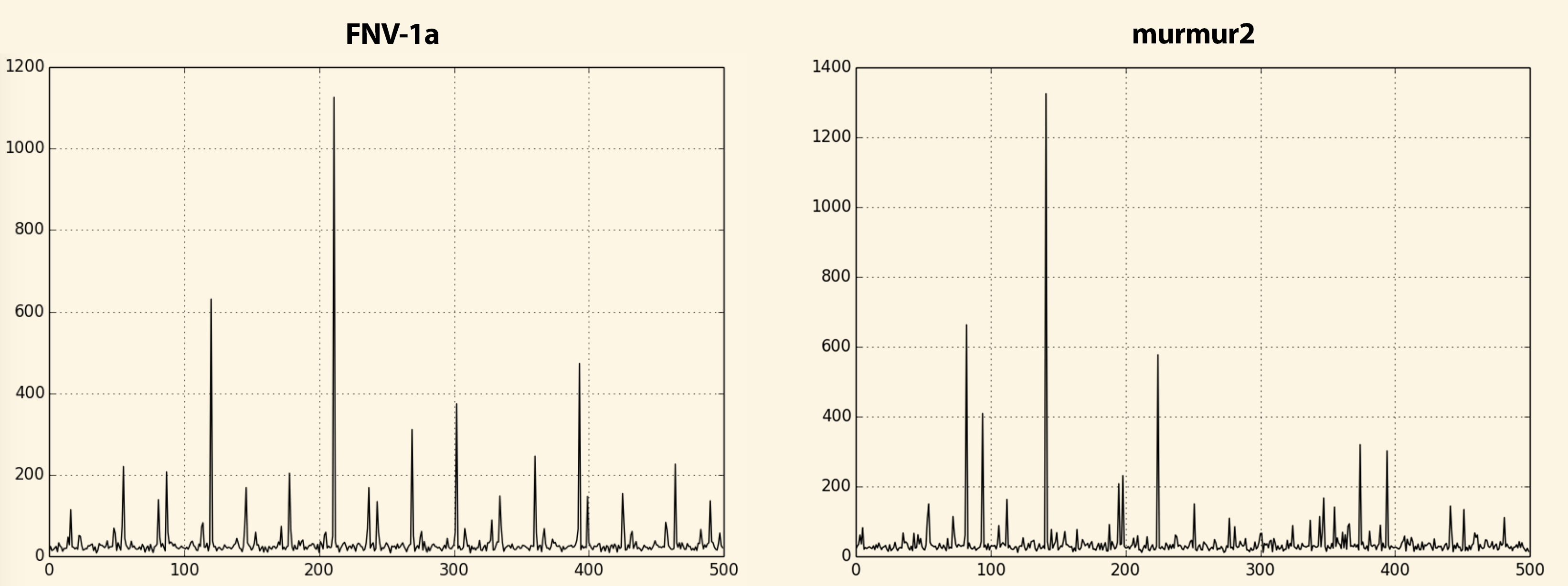 to murmur2 the FNV distribution seems pretty regular.