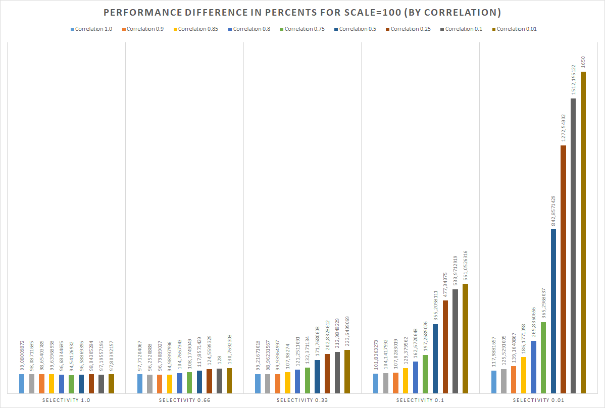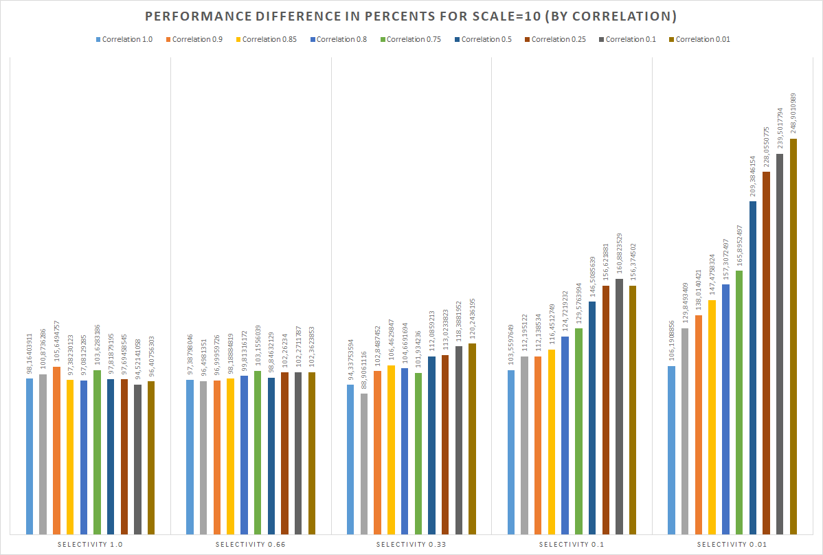But the same case with 1.0 selectivity gives 96% comparing to baseline. So,