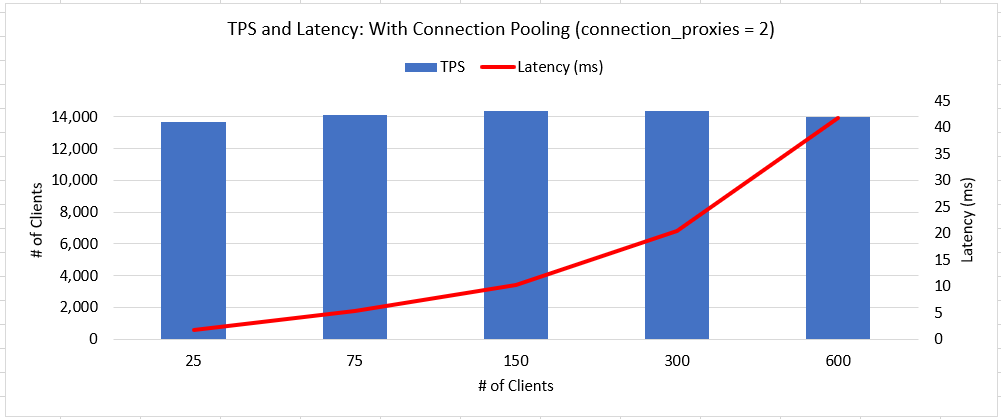 16 and 32 connection pool size (number of worker backend).
