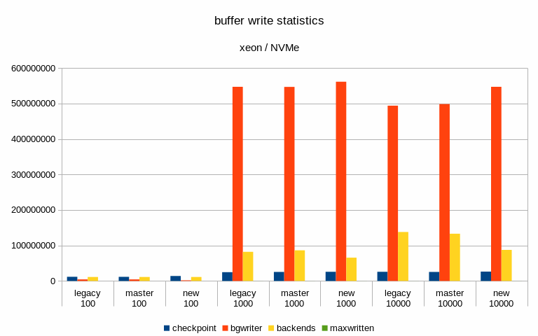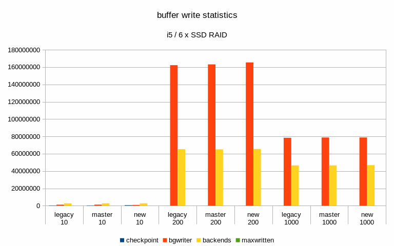 And finally, I've looked at buffer stats, i.e. number of buffers written
