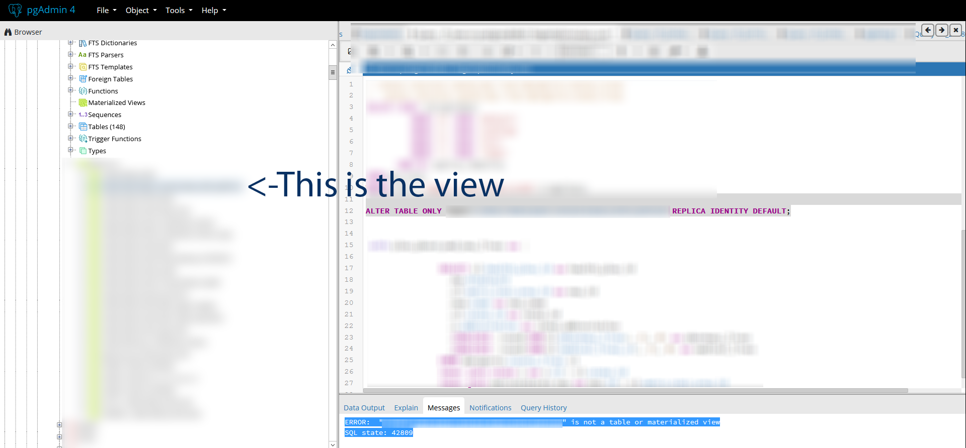 LINE 19: ...E ONLY my_view REPLICA ID..pg_restore: [archiver (db)] could not execute query: ERROR: relation "myschema.my_view " does not exist