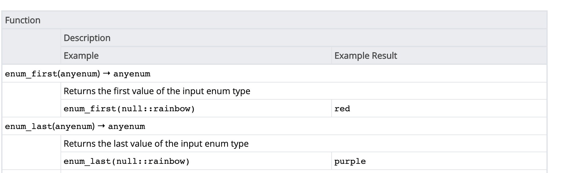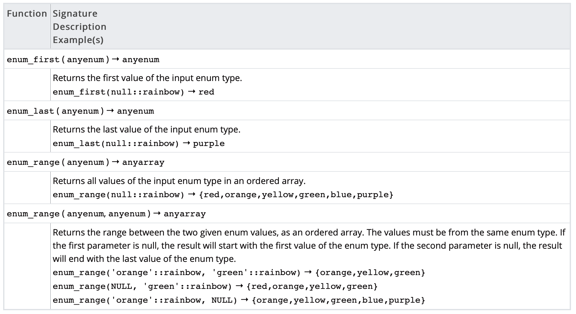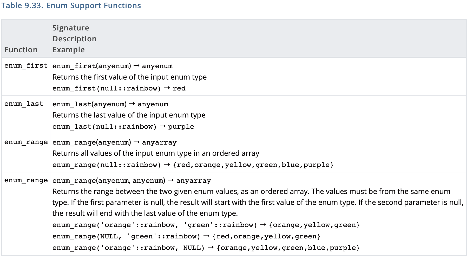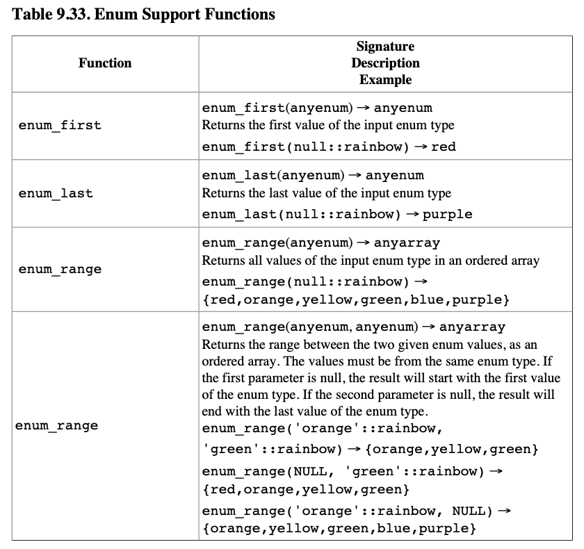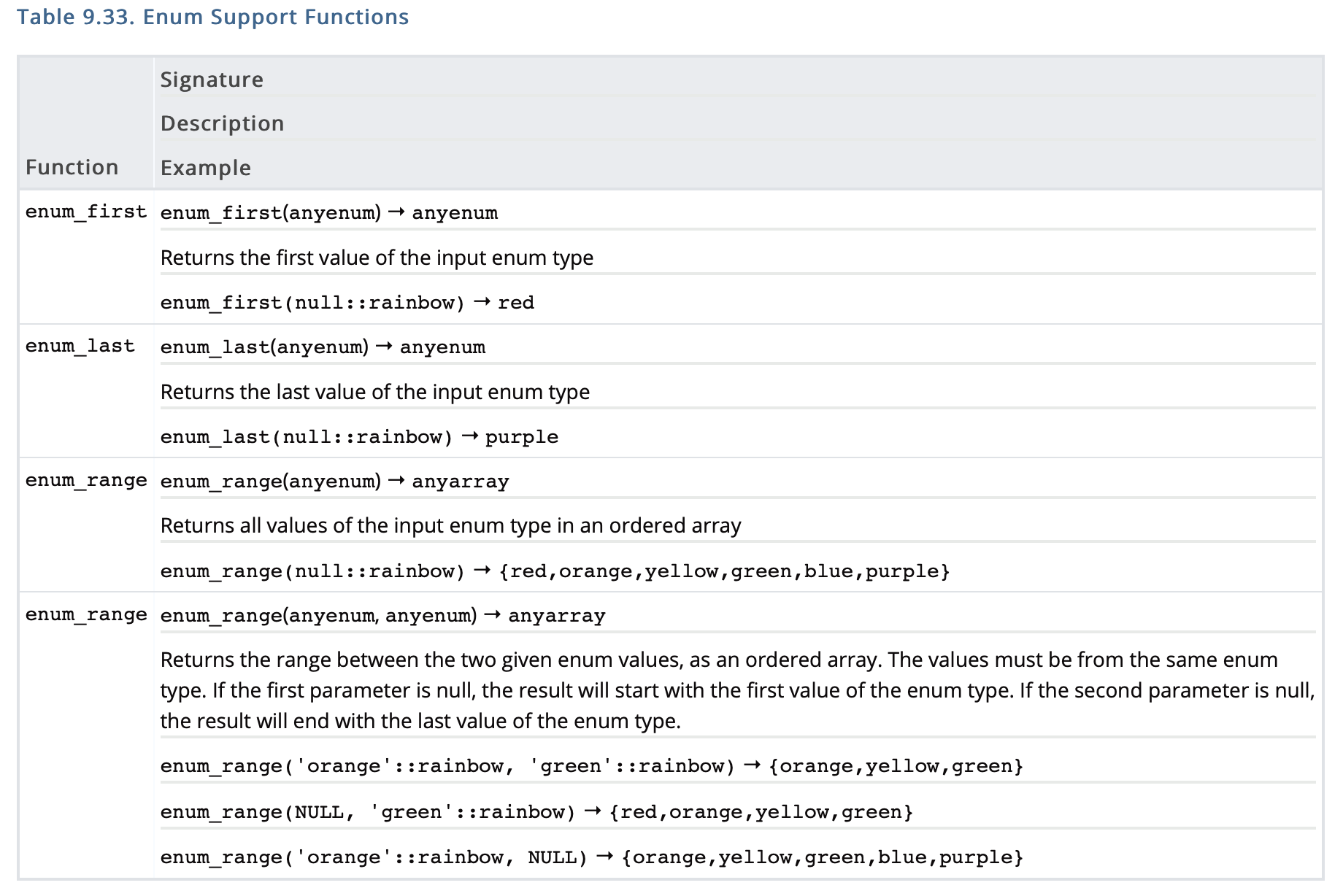 https://www.postgresql.org/docs/devel/functions-enum.html