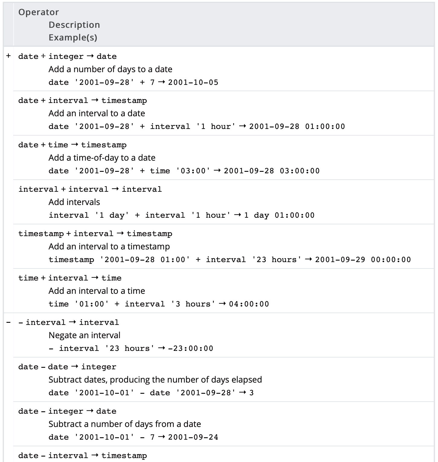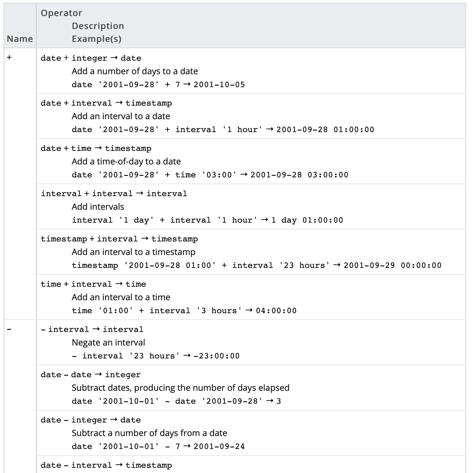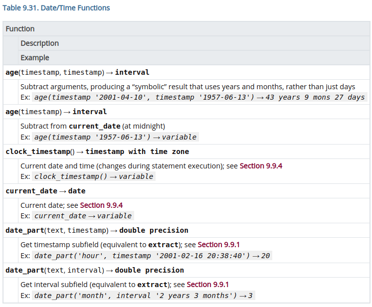 https://www.postgresql.org/docs/devel/functions-datetime.html