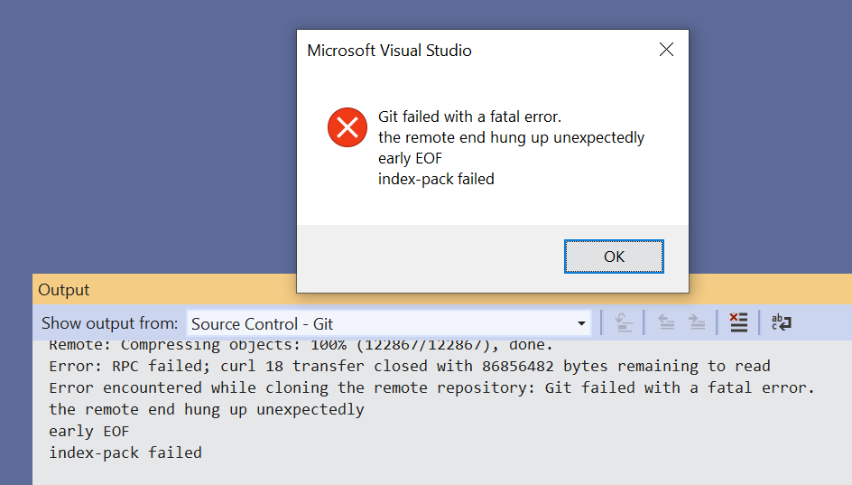 error: RPC failed; curl 18 transfer closed with 3265264 bytes remainingto read