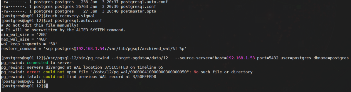 pg_rewind restore_command issue in PG12