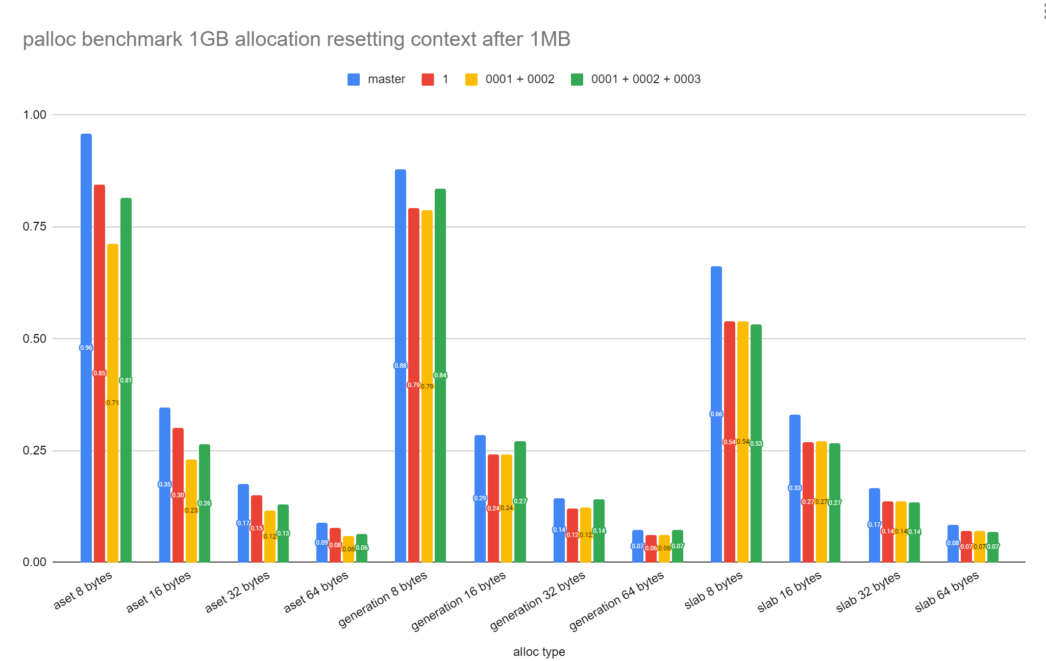 that 0002 improves aset performance by *more* than 0001: for 8 byte aset