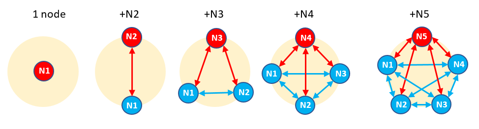 +    from the existing nodes to the new node).